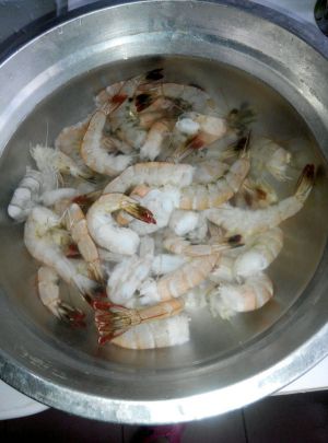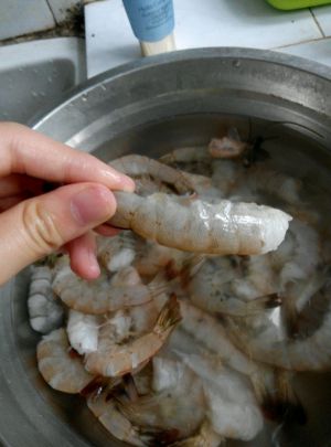 把虾头用剪刀剪掉,里面有脏东西,必须哦!