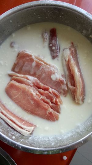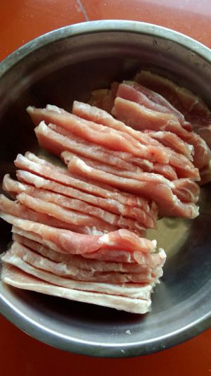 猪里脊切大片,逆着肉岔切哦!!要不然会塞牙!