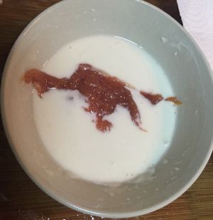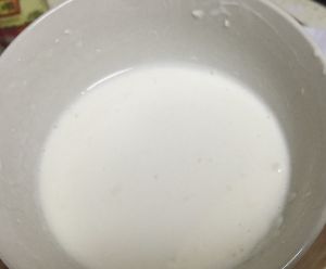 调好淀粉糊,加少量食用油。我把剩下的蛋黄放里面啦,也可以不放。