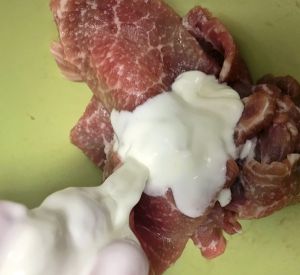 猪里脊肉切大片,厚约2-3毫米,不能太薄,太薄就炸干了