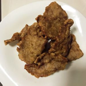 油烧6 7成热,下肉片双面炸,炸至金黄色,捞出,这时候肉基本熟了