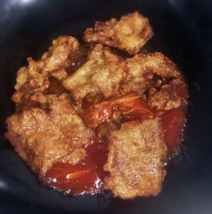 如果爆香葱姜蒜,倒入炸好的里脊肉,把料汁倒入国内。