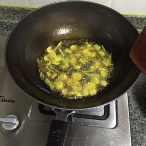 2,锅内放油先把姜,辣椒及蒜炒香,再把酸菜包放入锅中一起翻炒。