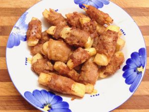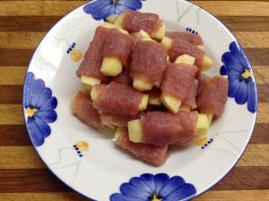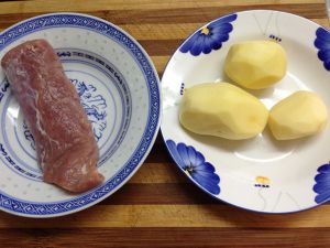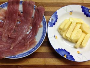 土豆切条,里脊片好,片好的里脊最好用少许盐腌一下