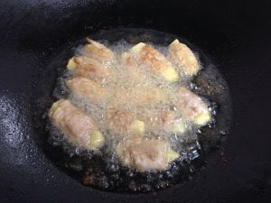 油的量大概要像这样.为的是把排骨的表面炸的金黄.