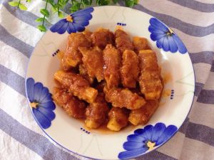 待到汤汁浓稠时,出锅前淋入少许香醋,装盘上菜,味道酸甜可口,肉香浓郁,根本停不下来呀!