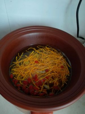 放入桂圆、枸杞、红枣等,再煮15分钟左右。