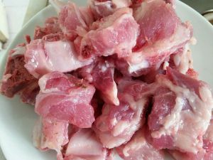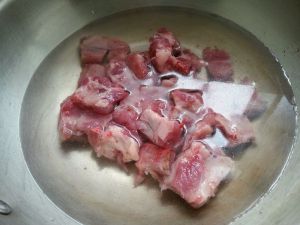 锅中放凉水 倒入排骨 煮开后一会儿 撇去浮沫 捞出排骨