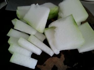 放入带皮的冬瓜大块,水开后用中小火煲1小时左右。临出锅事调入盐和白胡椒粉即可。
