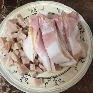 切好培根和香肠(香肠可用肉丸或小虾丁代替)