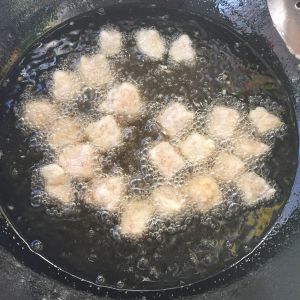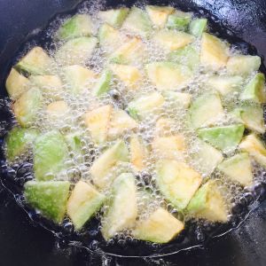 油温四成热的时候炸茄子条,炸微微金黄色捞出