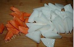 胡萝卜,山药去皮洗净切滚刀块。加入排骨汤里