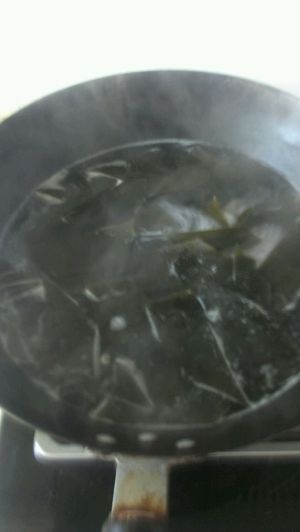 提前泡好的海带搓洗干净,切成小块煮开5分钟,捞出晾干水分。