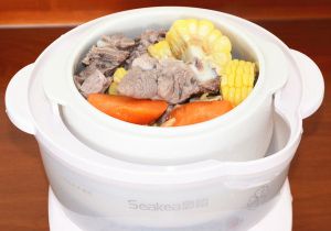 10分钟后。。。。。。哈哈,可以开始品尝美味的胡萝卜玉米排骨汤了