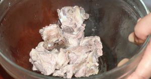 排骨洗净,焯水(水开,将排骨放在开水5分钟),将排骨捞起放在盆里
