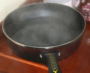 锅中放少量的油,油烧热后放生姜炒香,倒入排骨。在此同时汤锅烧水。汤锅水烧开,倒入炒香的排骨。加入适量的的盐。