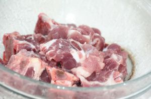 买回来的肋排用水洗净放入锅中焯掉血沫。(锅里加少许料酒、花椒和大料去腥)。焯完捞出用温水冲净备用。