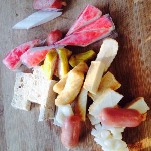 熬汤过程中要切好鱼饼,胡萝卜和大头菜备用
