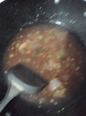 炒洋葱 青椒 加入番茄酱小火熬汁