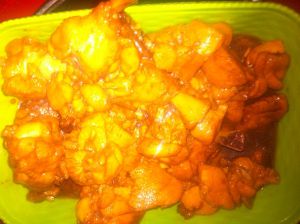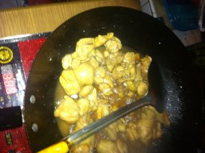 锅中少放油,煎至2面金黄色,放入上面准备好的材料翻炒1分钟左右。开大火倒入可乐,焖一下。转小火。
