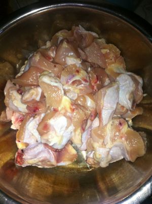 鸡翅根用清水泡净,冷水下锅煮5分钟左右。捞出控水。(很重要的一步:用好用的工具,在案板上拍拍鸡腿,让它松散一些,做的时候好入味。或者可以扎些洞也可以。自己方便的方法就可以)