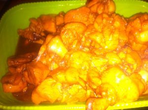 另起一锅将拨好的板栗加入烧开的糖水中煮熟,起锅倒入鸡腿锅中翻炒烧入味,后加可乐半瓶加锅盖煮至收滋即可!