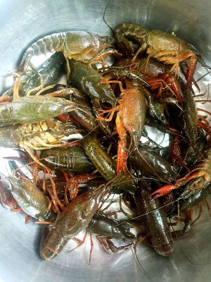 把冷冻的小龙虾尾放在清水中解冻后,清洗干净。