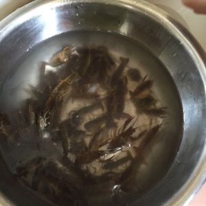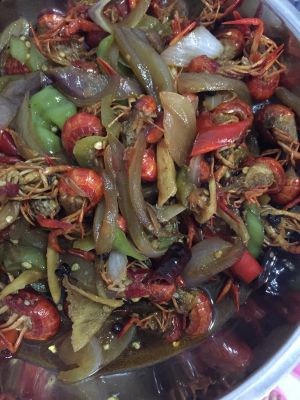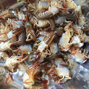 买回来的虾用点盐,醋和油泡两个小时,吐出脏东西,小龙虾本身生长环境脏。这个是我处理好的,去掉虾胃和虾线,真是太费事了,忙了一个多小时,累啊!