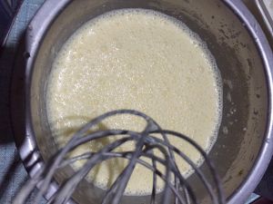 牛奶搅拌好后加入低筋面粉和蛋黄,继续搅拌……