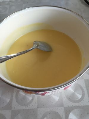融化后加入淡奶油,蛋黄和炼乳,充分搅拌均匀