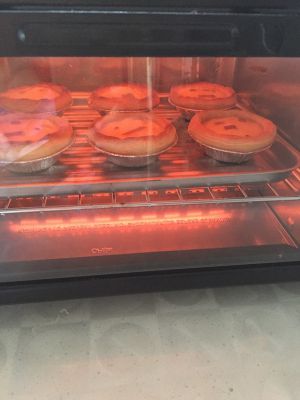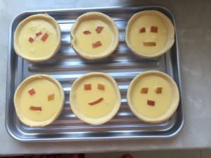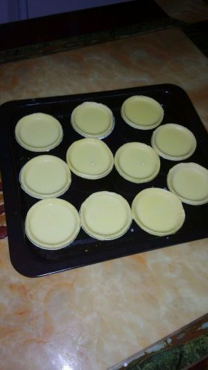 烤箱预热5分钟,放入烤箱上下火230度,25分钟左右,每个烤箱不一样,观察一下蛋挞表面有焦褐色就好了