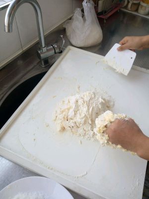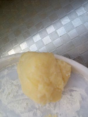 在把剩余的面酥油黄油加鸡蛋一个水少许和成面团醒一会
