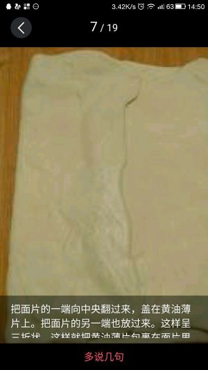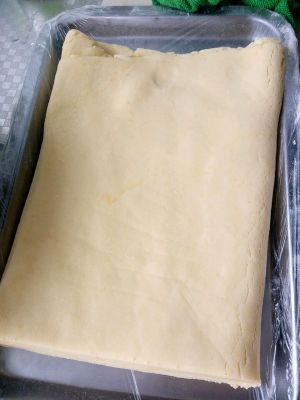 把面干成长方行大片,把酥片放在面上,用面片包上,在赶薄