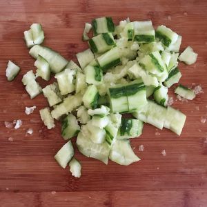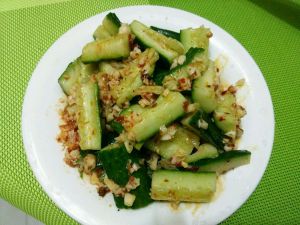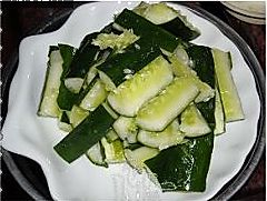 拍扁以后的黄瓜,切成小段(或切丁),用碟子装好;