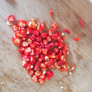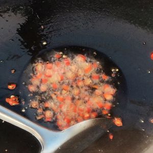 锅里倒油放入小火炒香朝天椒,放凉备用!