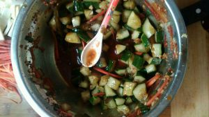 倒掉腌黄瓜出的水,倒入调好的料,拌好就ok