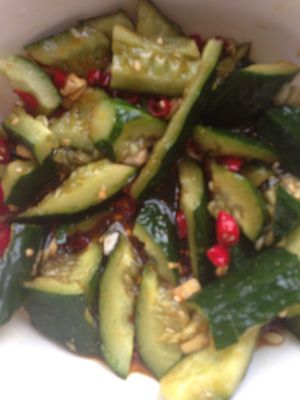 立即倒入黄瓜上,大蒜末适量多点才好吃。搅拌均匀就可以吃了。