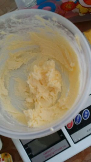 首先说下黄油的打发。很多亲都遇到这个难题~!但是黄油它好在可以反复变软(加温)变硬(放冰箱)的过程~~