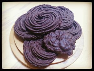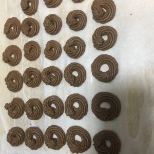 这个份量刚好一个S号裱花袋,可以做20个左右直径6cm的曲奇~挤到后半袋,手温捂热了的缘故,变得很好挤~可以尝试各种花式~呵呵~