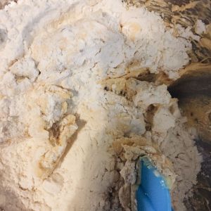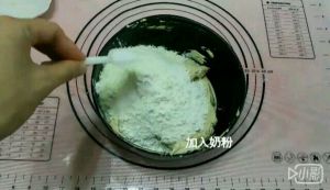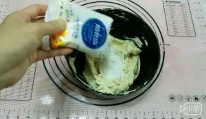 低粉和小苏打混合过筛后搅拌到看不见干粉即可(如果喜欢香味浓厚点,可以加入几滴香草精)