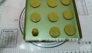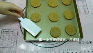 取一小块面糊揉成圆形(用量少一点,后期烤完会发出来变得很大,所以圆形可以少一点用量会漂亮一些),用汤匙轻轻压扁。