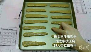 将面糊装入裱花袋中,使用喜欢的型状裱花嘴,在烤盘中挤出花型