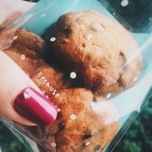 这款曲奇的口感很蓬松,外部又比较酥脆,很适合当零食。红糖和白糖的搭配真的让口感很有层次,加上巧克力豆的浓郁,啧啧啧,不说了,我先吃。如果要share的话,可以翻倍加大用量,然后像我这样打包好送人噜~配奶茶什么的最棒啦!