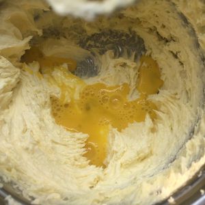 分次加入鸡蛋液,每次加蛋液都要打到黄油和蛋液融合后再加,蛋液一定要分次加,不然易油和液体分离。