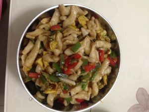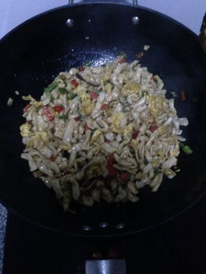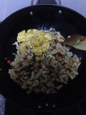 做法2:鸡蛋双椒炒面余子
