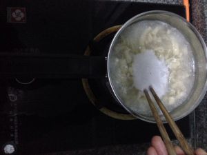 倒入面余子 注意:倒入面余子之前再加点油、不然容易糊锅