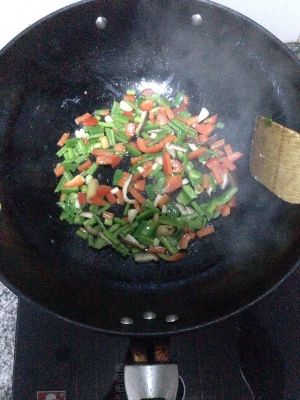倒入双椒继续炒