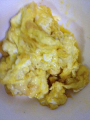 锅里放油,鸡蛋炒熟!盛出!