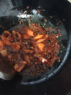放入花椒大料和葱蒜爆炒入味