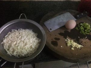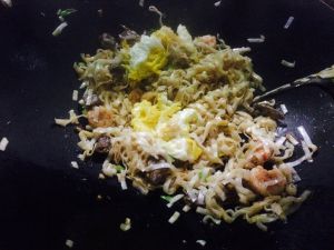 先炒辅料 分别是 肉丝 萝卜丝 豆芽 青菜 蛋丝 湿面